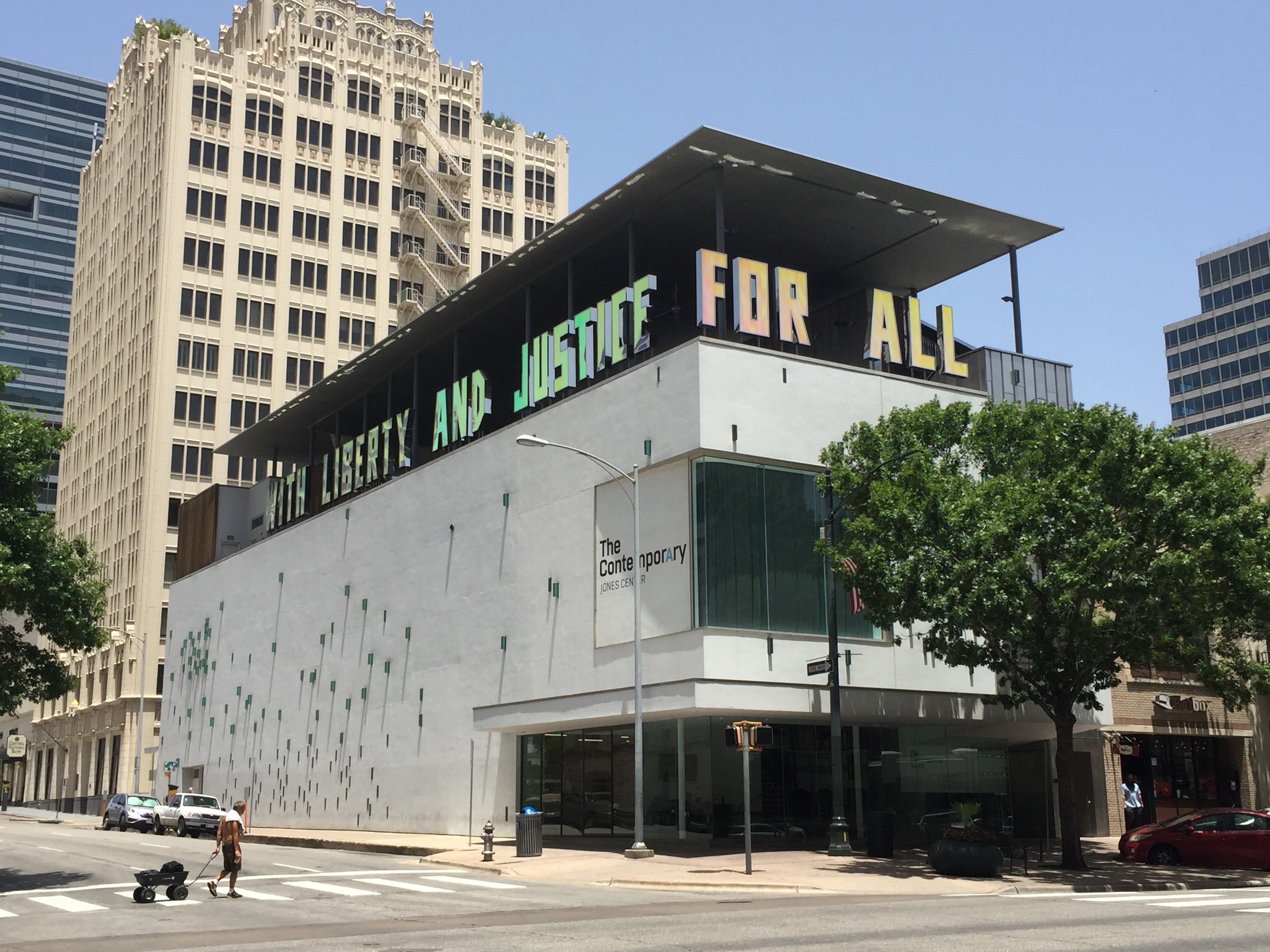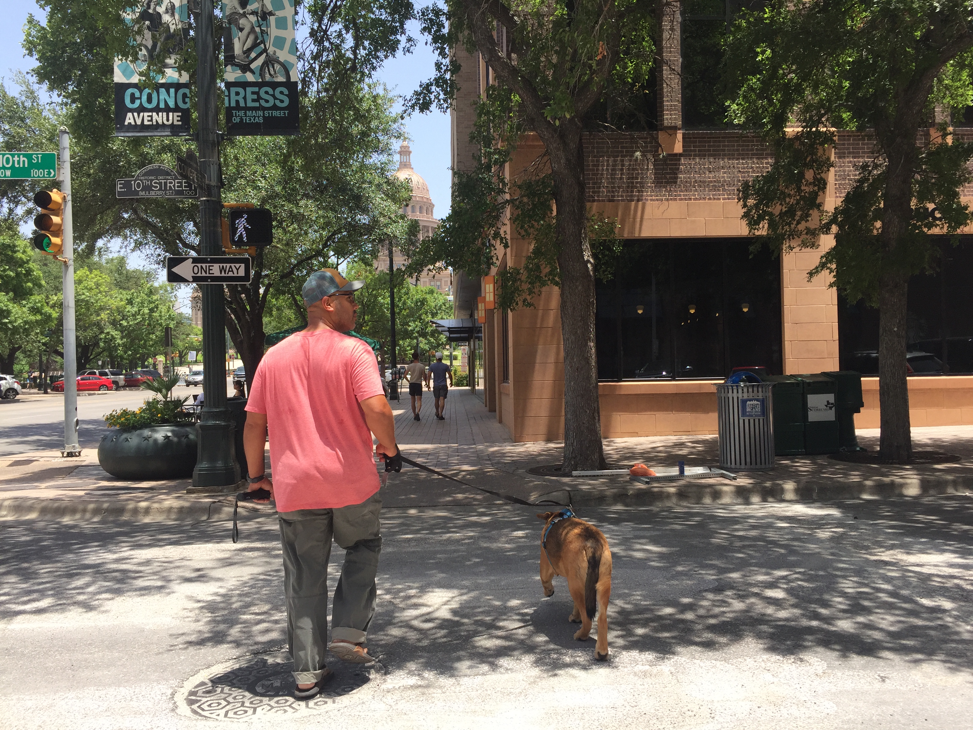 The grounds are lush green and decorated with beautifully mature trees, all of which part slightly to make way for walking paths that will wind through the complex with plenty to see and learn along the way. You’ll pass visitors strolling alone or with a friend, reading a book on any of the benches scattered throughout, eating a sandwich under a tree, or walking their dog like we were. If you look up you’ll see birds flying overhead, squirrels dancing on the limbs of trees, and Austin city’s taller buildings in a distance, so there’s no forgetting exactly where you are.